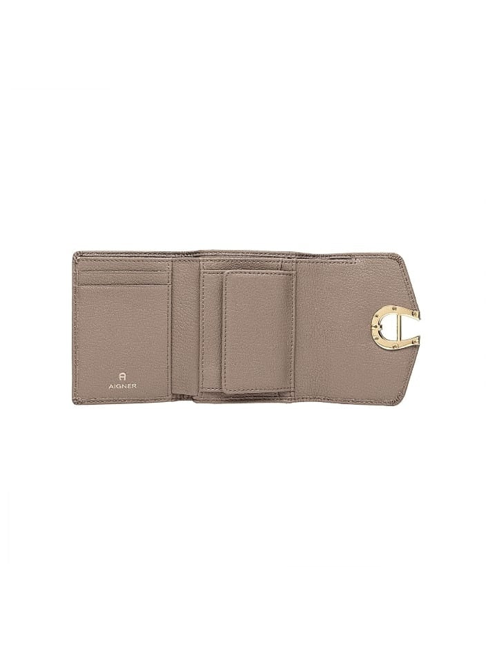 The Aigner Mini Borse Pina Taupe is a stylish and practical wallet. It also features shiny light gold-coloured metal parts and a secure snap button closure.