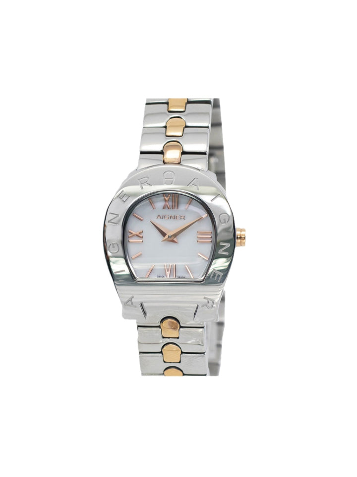 The gleaming white dial with the Aigner logo adds the perfect finishing touch.