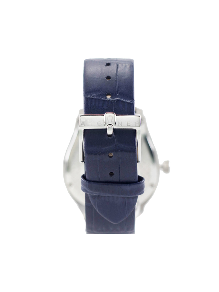 This Aigner Bergamo A137101 watch is a stylish timepiece that will elevate your look. Crafted with stainless steel and a navy leather strap, it features a silver horseshoe-shaped case, 8 mm thickness, and mineral crystal type. The navy dial adds to the elegance of this watch, making it the perfect accessory for your wardrobe.