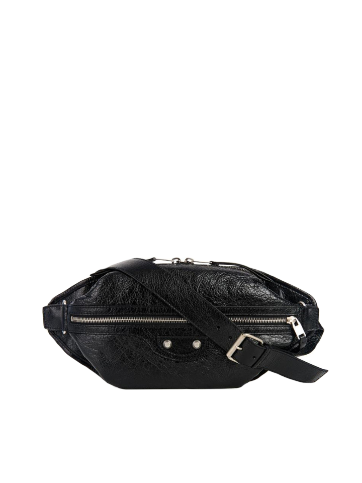 The Balenciaga Classic Silver Neo Lift Belt Bag is crafted from luxurious lambskin leather with silvertone hardware and zip fastening.