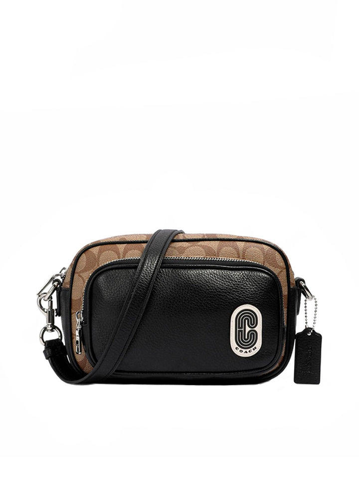 This versatile crossbody bag from Coach is perfect for any occasion. Crafted with signature coated canvas and refined pebble leather, it features an inside multifunction pocket and an outside zip pocket for convenient storage. The detachable strap allows it to be worn either on the shoulder or crossbody for extra convenience.