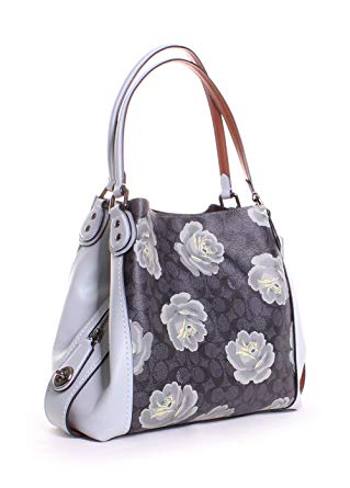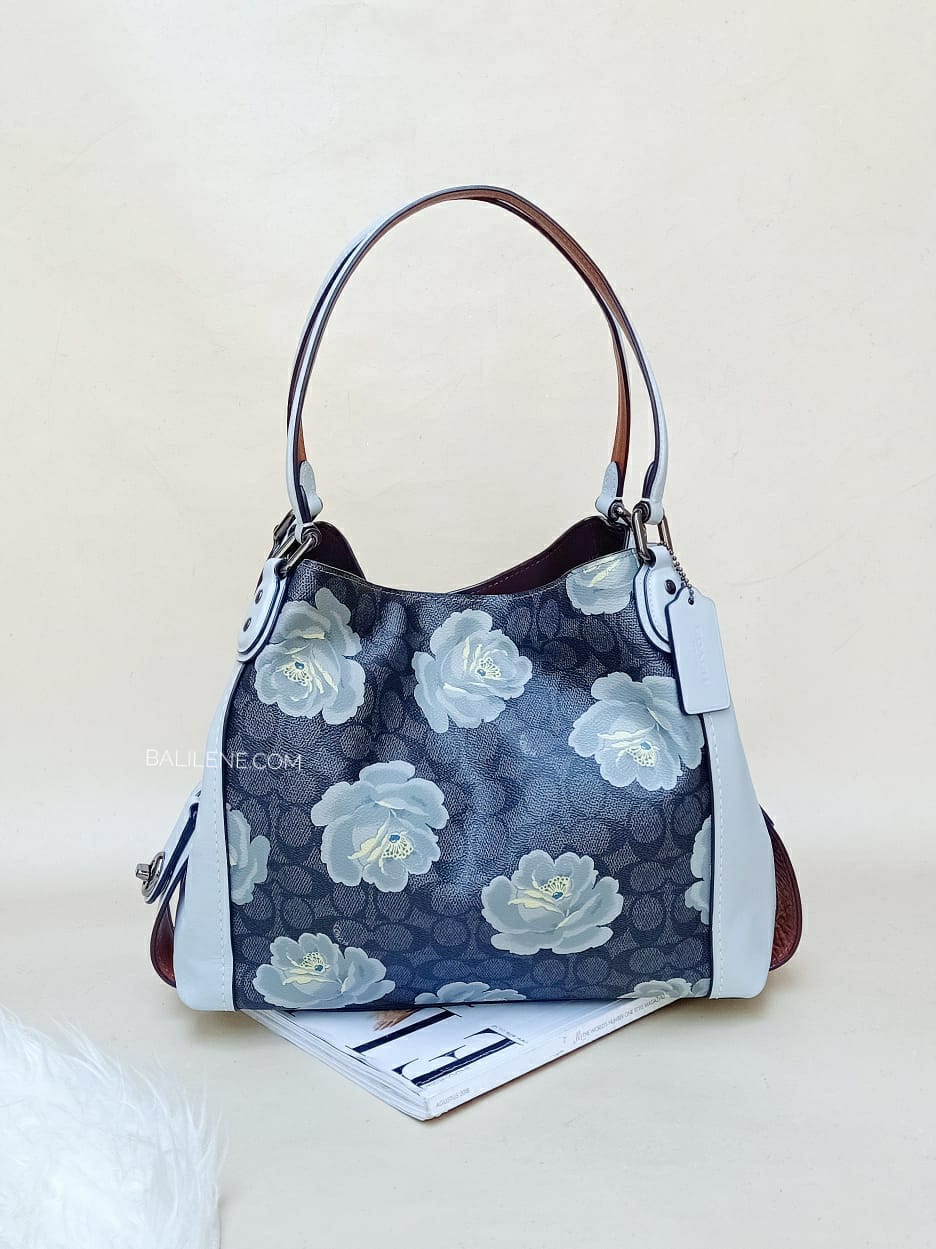Coach 31699 Edie 31 Signature Rose Shoulder Bag In Charcoal/sky