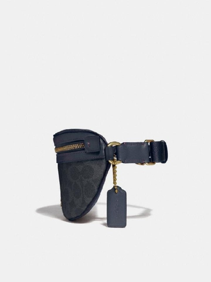 Elevate your accessory collection with the Coach 39937 Belt, designed with signature canvas in a refined charcoal and midnight navy palette.