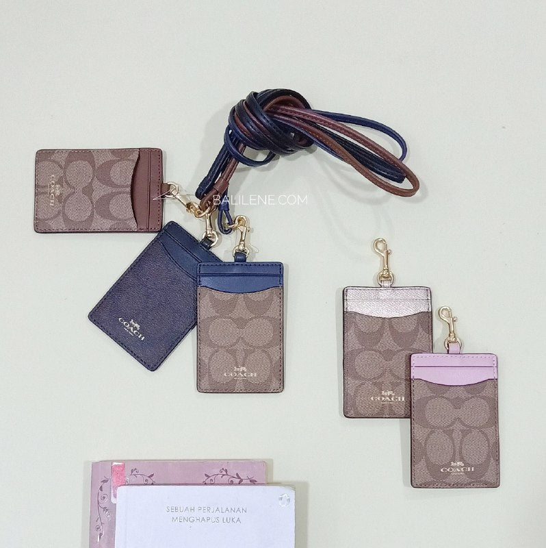 Terbuat dari Signature coated canvas dan crossgrain leather , Lanyard Id Case 1 ID window dan 2 slot kartu di bagian belakang. Dapat di pakai di leher atau lepas tali dan selipkan kedalam tas.