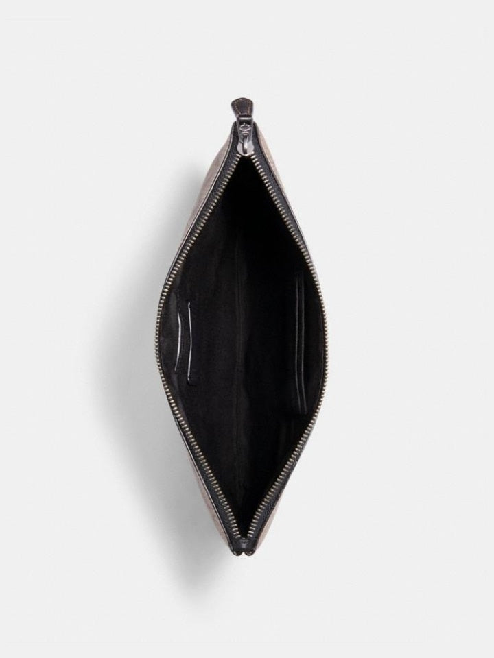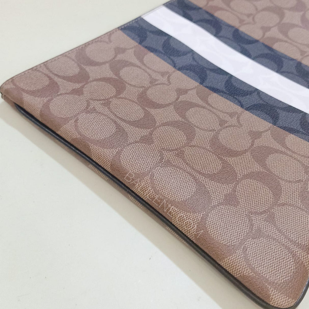 Coach 6720 Signature Blocked Large Pouch Tan Multi