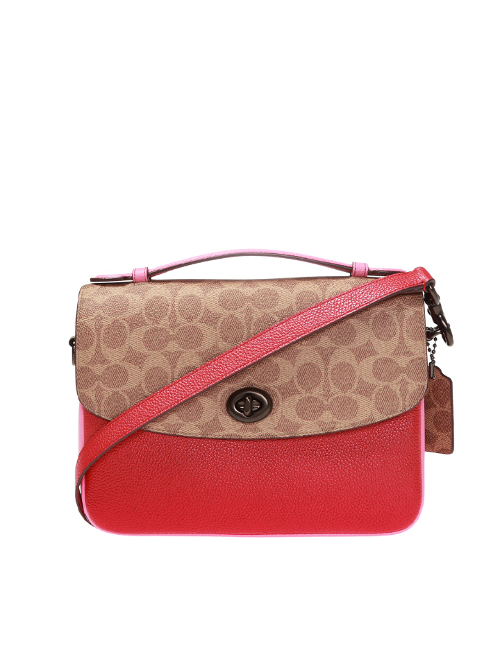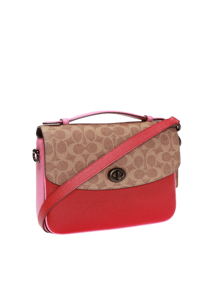Coach 74091 Cassie Signature Blocking Crossbody Tan Red Apple