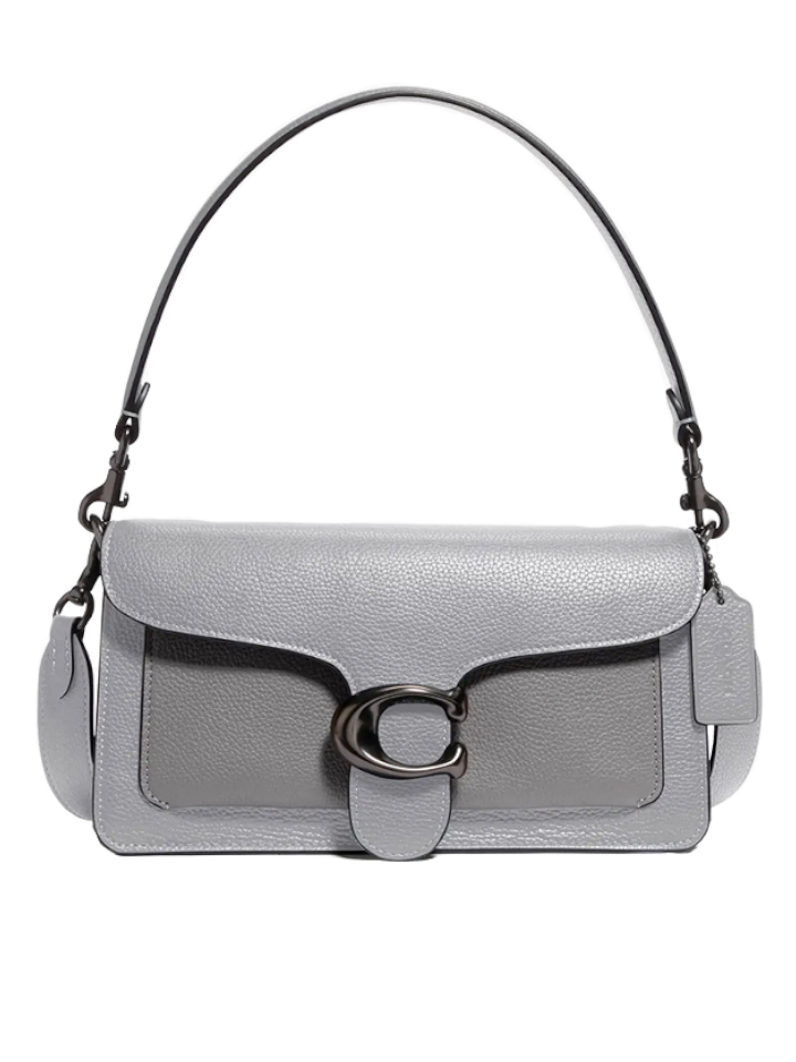 High-quality pebble leather construction, with a zip pocket and multiple slots for secure storage. Snap closure and fabric lining, plus an outside slip pocket. The Coach Tabby's straps offer tailored versatility for shoulder or crossbody wear.