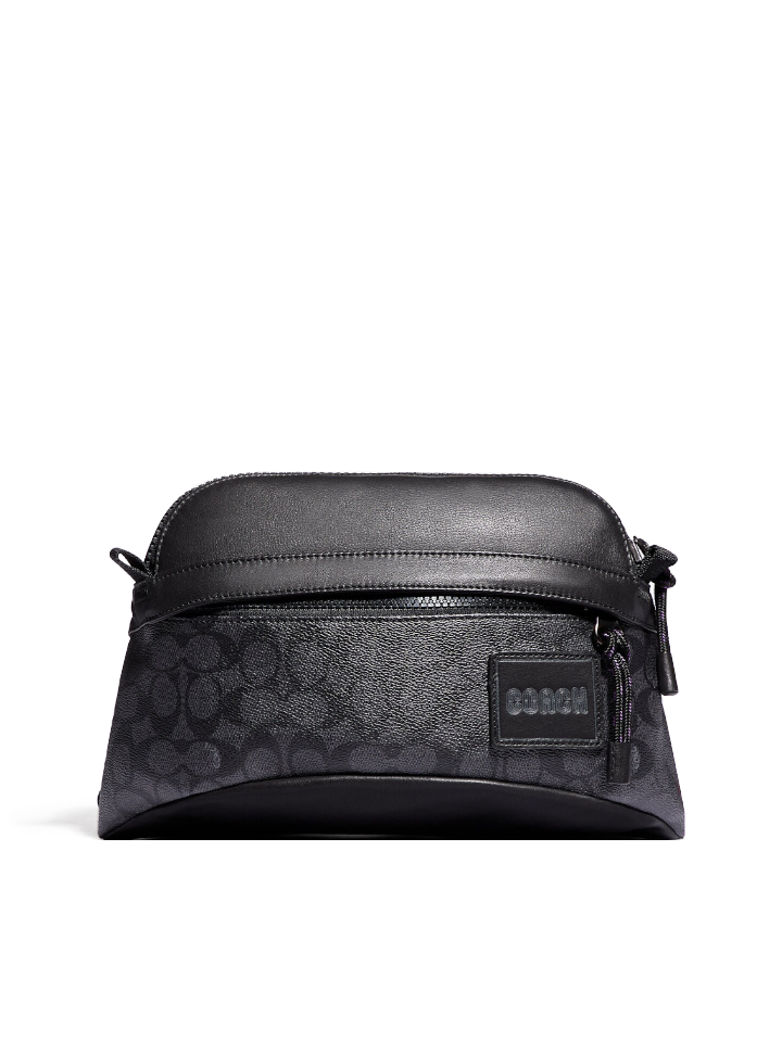 The Coach Pacer Sport Pack in Signature Canvas with Coach Patch Charcoal offers a refined yet practical design ideal for everyday use.
