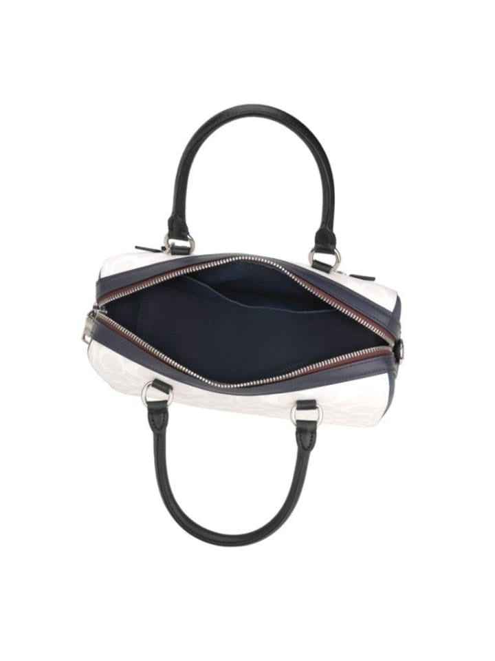 Step out in style with the Coach 91071 Coach Signature Rowan Satchel. Crafted with a durable coated canvas and double handles, it will keep your essentials secure with its zip closure and detachable strap with 23" drop.