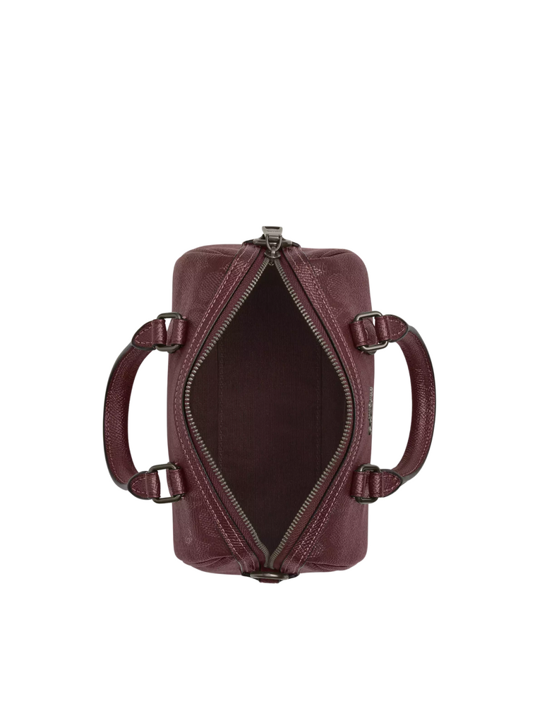 Discover ultimate convenience and style with the Coach Boxed Mini Rowan Crossbody Bag and Mirror Bag Charm Set. Made with Signature Canvas in a rich wine multi color, this set comes with a versatile crossbody bag and a chic bag charm with a built-in mirror. Perfect for any fashion-forward, on-the-go individual looking to elevate their everyday look.