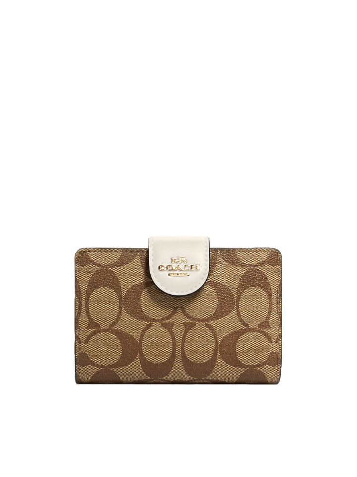 Coach Medium Corner Zip Wallet In Signature Canvas Light Khaki