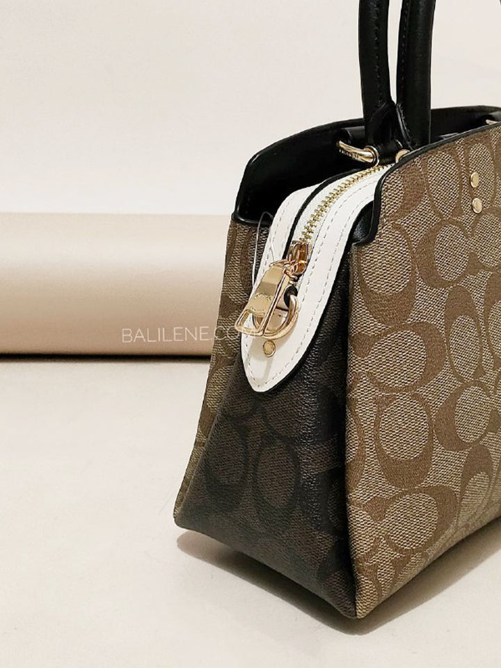 Coach Mini Lillie Carryall In Blocked Signature Canvas Khaki Brown Multi