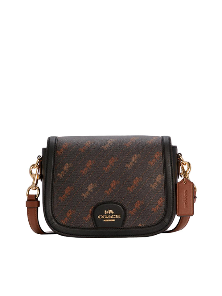 Coach C4059 Saddle Bag With Horse And Carriage Dot Print Black