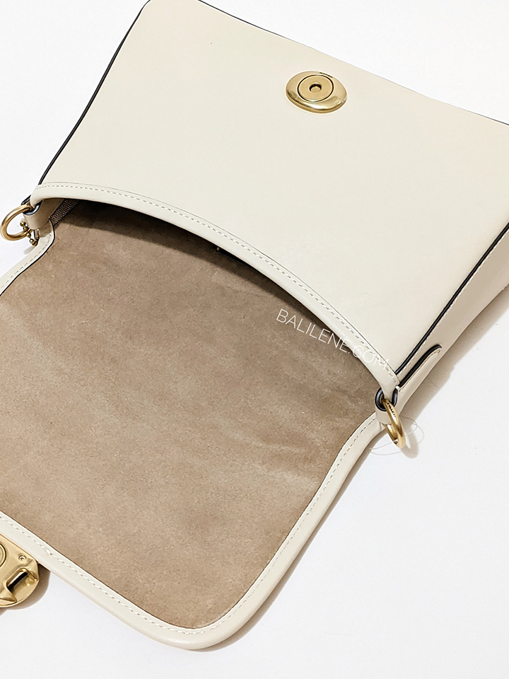 The Coach Soft Tabby Shoulder Bag in Ivory offers a refined blend of timeless design and practical elegance.