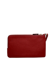 This Coach Double Zip Wallet features a stylish brown and red Signature Canvas design. With a convenient double zip closure, it offers ample storage for cards, cash, and coins. Perfect for the fashion-forward individual who values both style and functionality.