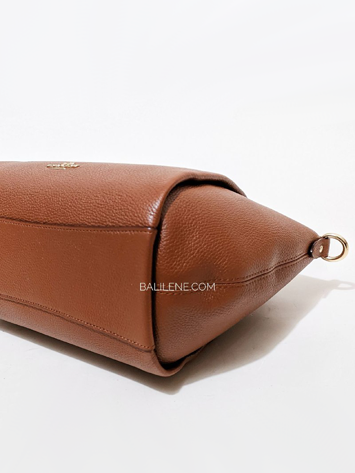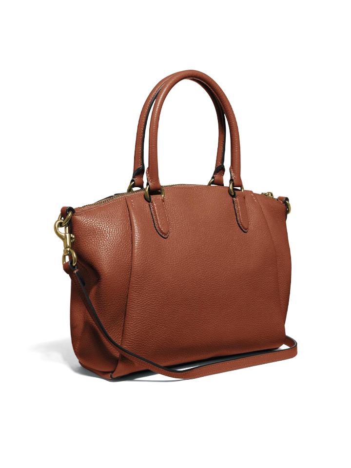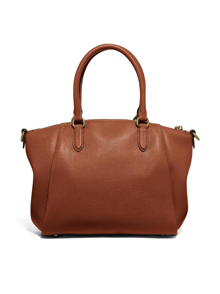 Crafted of polished pebble leather, the Elise satchel is a versatile daily bag based on a best-selling Coach design. It features interior pockets, top handles, and an adjustable strap for crossbody wear