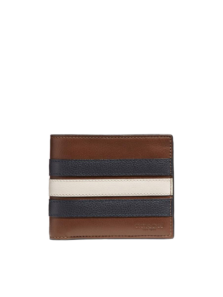 Coach F24649 Men 3in1 Varsity Leather Wallet Saddle Midnight Navy Chalk