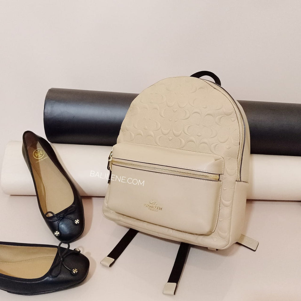 The Coach Charlie Backpack in Signature Desboss Beechwood combines refined craftsmanship with practical design.