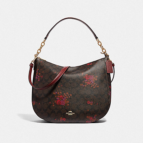 Coach F38050 Elle Hobo In Signature Floral Bundle Print Brown Metallic Currant