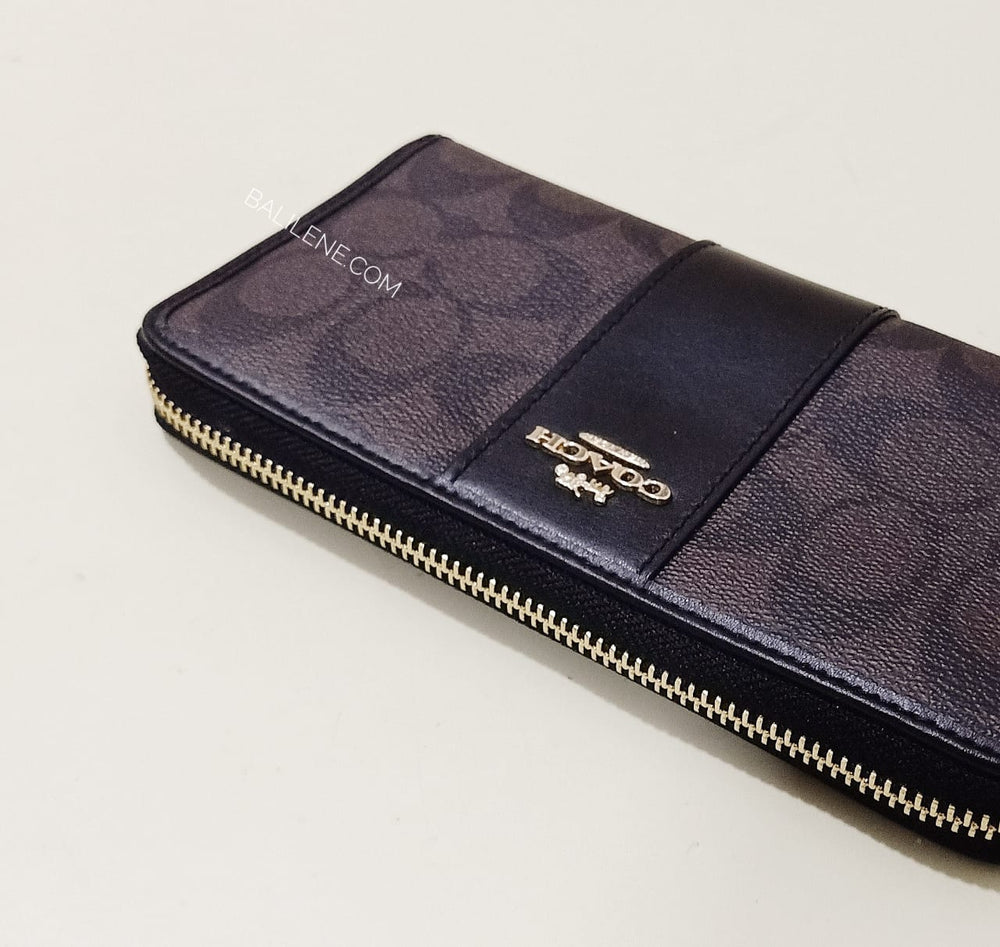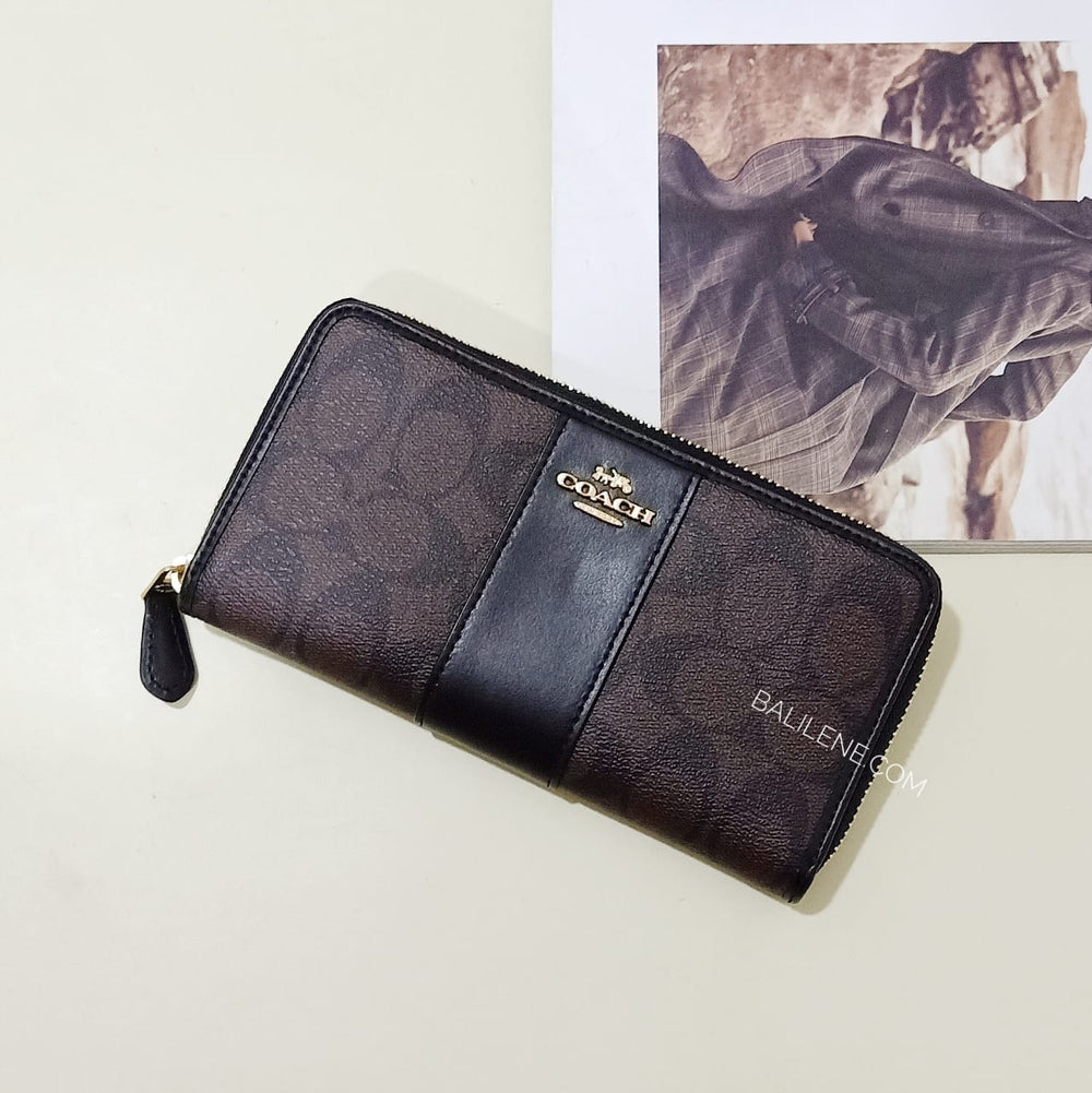 Coach F54630 Signature Leather Acc Zip Brown Black