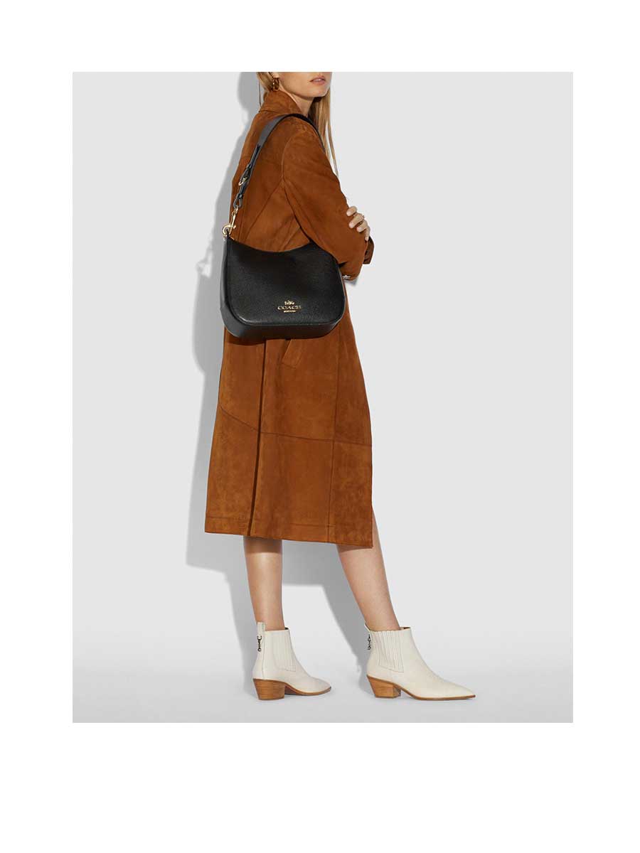 The Coach Leather Jes Hobo is crafted with refined pebble leather and signature coated canvas for a luxurious look and feel. Inside, find a slip pocket and multifunction pockets, plus a zip-top closure and fabric lining for secure storage. An outside zip pocket and a detachable strap with 14 1/4" drop provide convenient access to all your essentials.