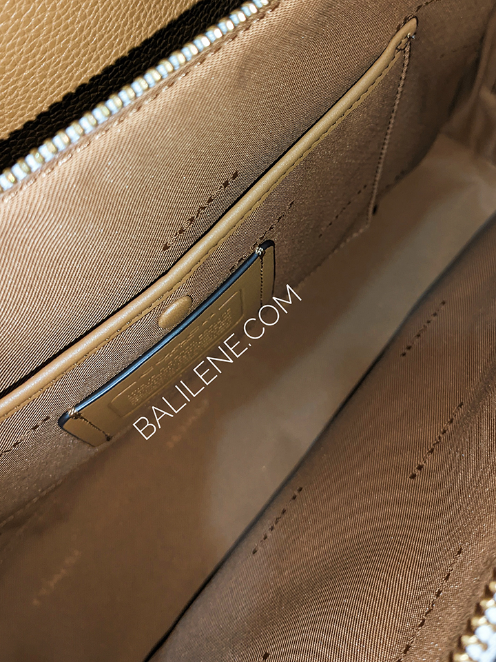 The Coach Lora Carryall’s polished pebble leather and suede construction is sure to elevate your look. A zip closure and fabric lining provide added security and protection.