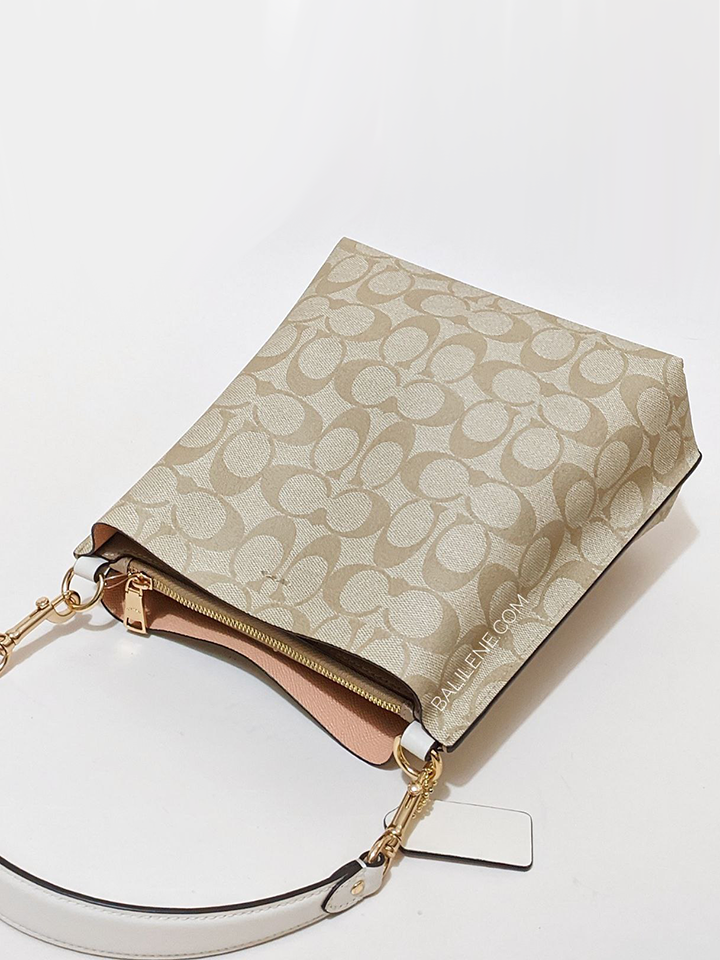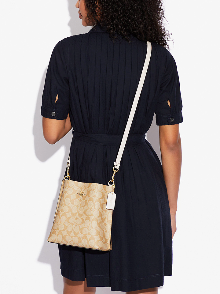 Blending timeless design with practical elegance, the Coach Mollie Bucket Bag 22 features signature canvas in sophisticated Light Khaki Chalk. Its spacious interior offers versatile storage while maintaining a sleek silhouette, ideal for everyday use or refined occasions.