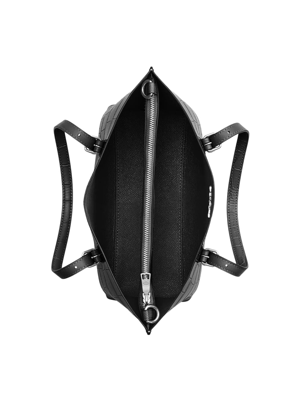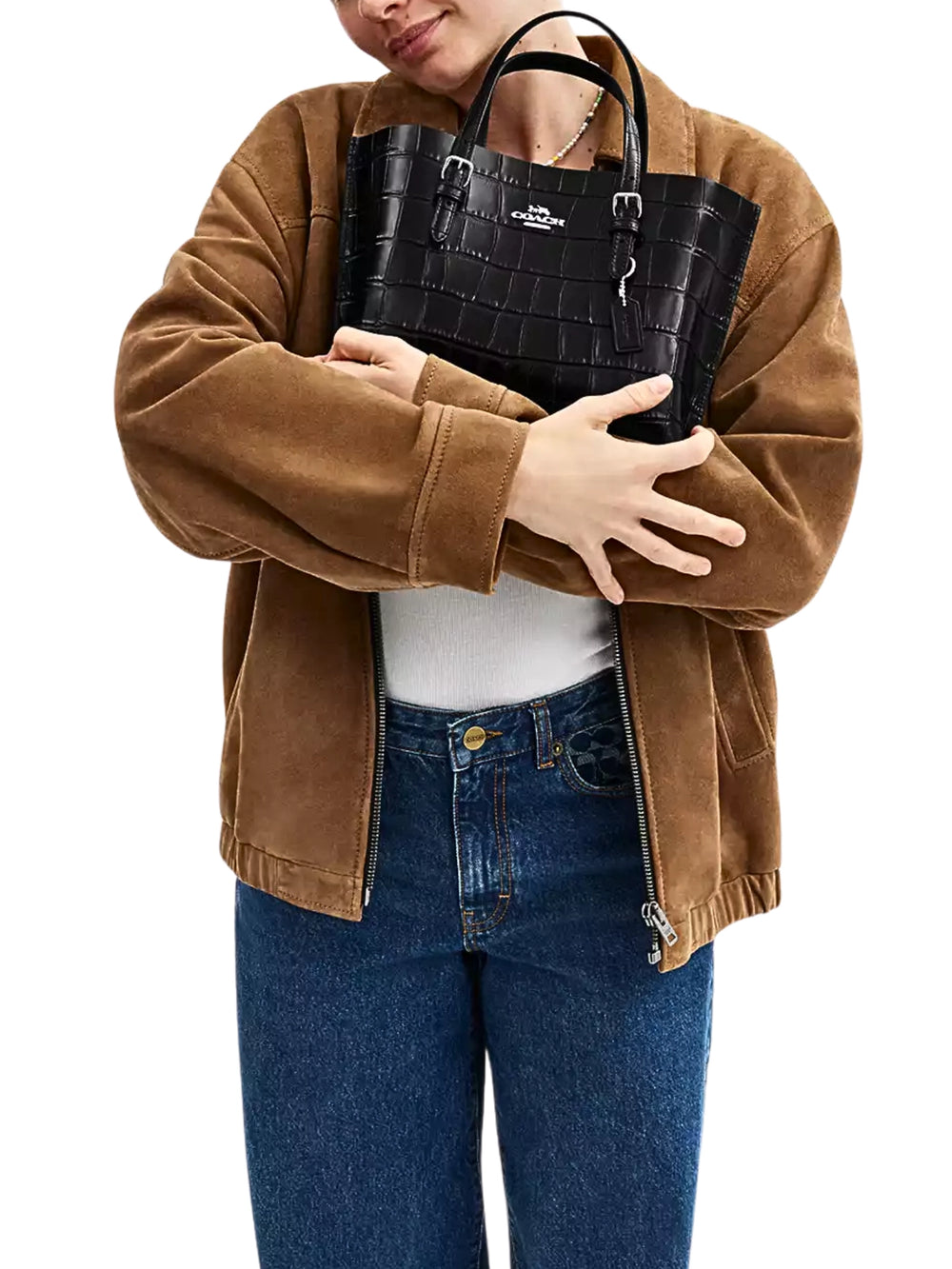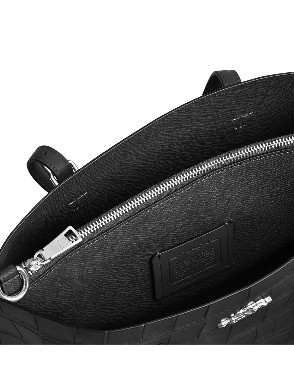 The Coach Mollie Tote Bag in black croco-embossed leather combines timeless sophistication with practical versatility.