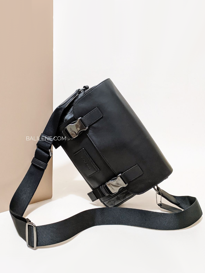 The Coach Track Crossbody in Signature Canvas features a durable gunmetal and charcoal black design, expertly crafted for both style and function. Its compact silhouette offers convenient hands-free carrying, while the signature canvas ensures lasting quality. Perfect for those seeking a refined yet practical accessory, this crossbody balances modern aesthetics with everyday usability.
