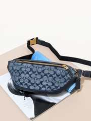 The Warren Belt Bag combines signature chambray and pebble leather, with a multi-functional interior pocket, zip closure, fabric lining, outside zip pocket, and an adjustable strap for a comfortable waist fit.