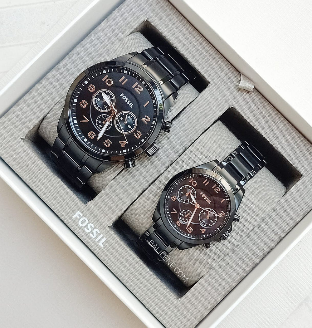 Fossil Bq2278set His And Her Chronograph Black Stainless Steel Watch Gift Set