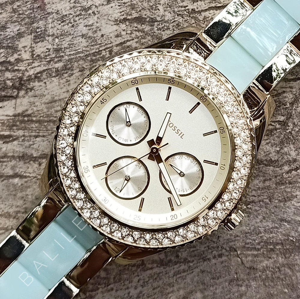 Fossil Es4757 Stella Multifunction Two Tone Stainless Steel And Acetate Watch