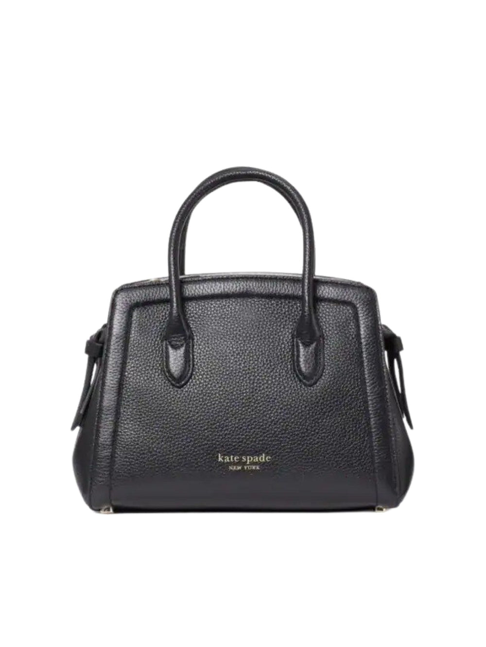 The Kate Spade Knott Mini Satchel in Black is the perfect choice for chic, modern style. Crafted with pebbled leather and smooth Italian leather trim, this mini satchel features a pinmount logo and a dog-clip closure for added security. The textured PVC lining adds a touch of sophistication.