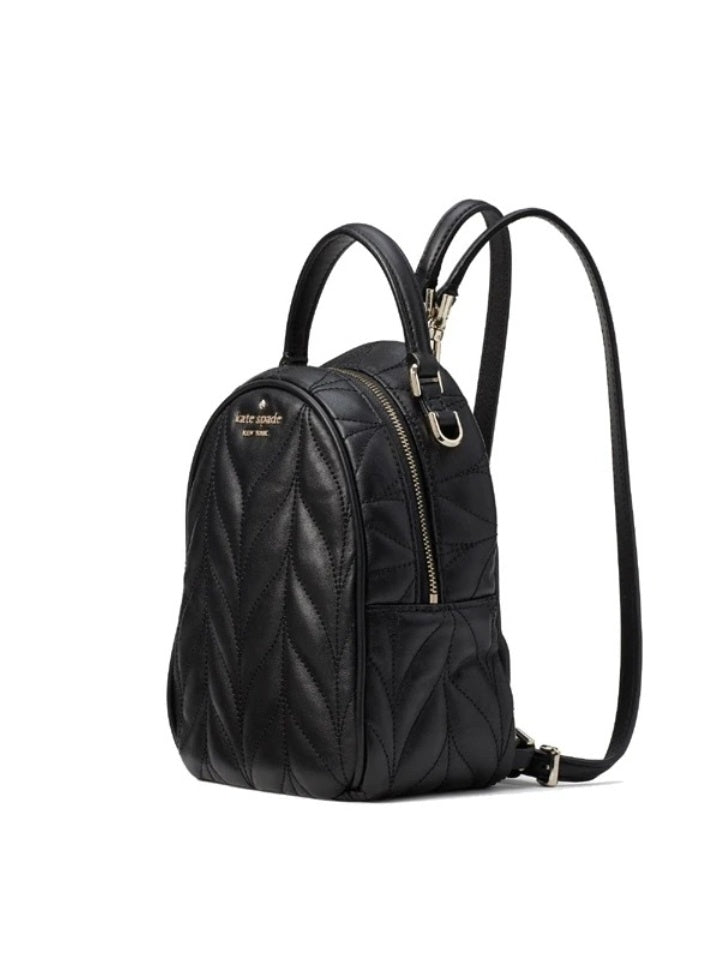 The Kate Spade Briar Lane Quilted Mini Convertible Backpack in black offers a sleek, versatile design crafted with quilted detailing for a refined look. Its compact size allows effortless carrying, while the convertible straps provide flexibility to wear as a backpack or a crossbody.