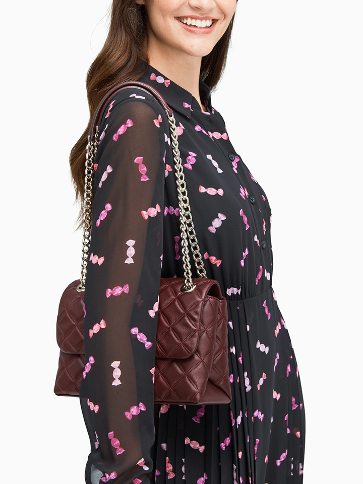 Kate Spade WKRU7076 Natalia Medium Flap Shoulder Bag Cherrywood