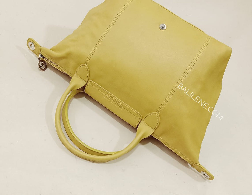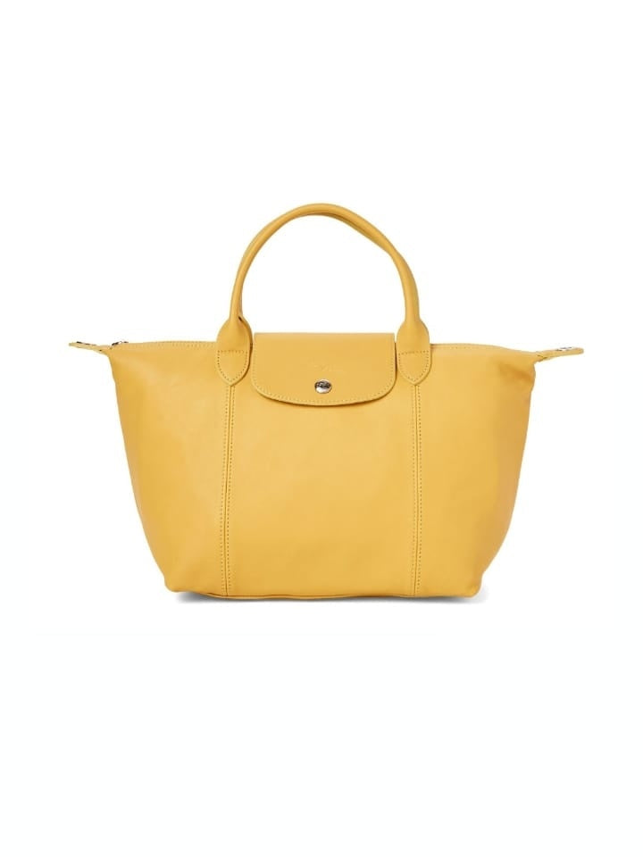 This Longchamp Cuir Small Sunshine bag is crafted from leather for a sophisticated look and feel. Its zip top with snap-flap closure provides secure storage, while double leather handles make it easy to carry. Featuring silvertone hardware, it's the perfect accessory for any outfit.