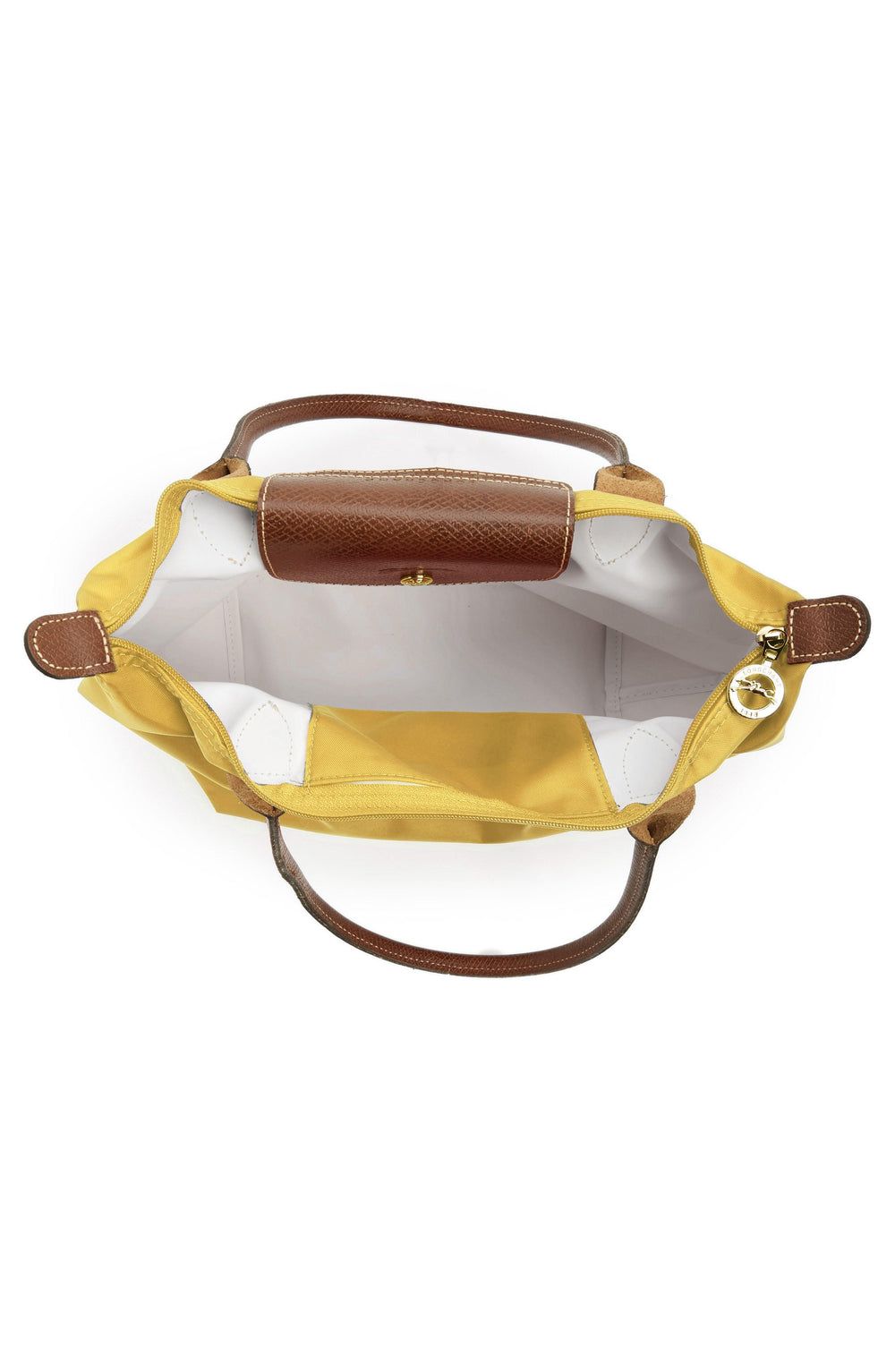 Experience the convenience and timelessness of the Longchamp Le Pliage. Crafted with a lightweight nylon exterior and an interior lining, it features a zip top and snap-flap closure for a secure and fashionable closure. The slip pocket offers handy storage for all your essentials. Available in Curry (Yellow).