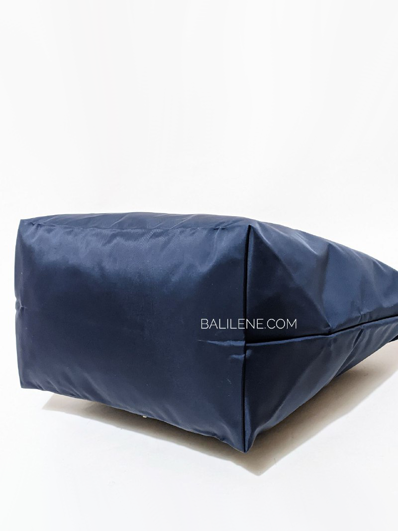 Longchamp's LE PLIAGE Green line offers an environmentally-friendly tote bag with ample volume, minimalist silhouette, and recycled polyamide canvas, featuring horse embroidery and a green edge indicative of its sustainable design.