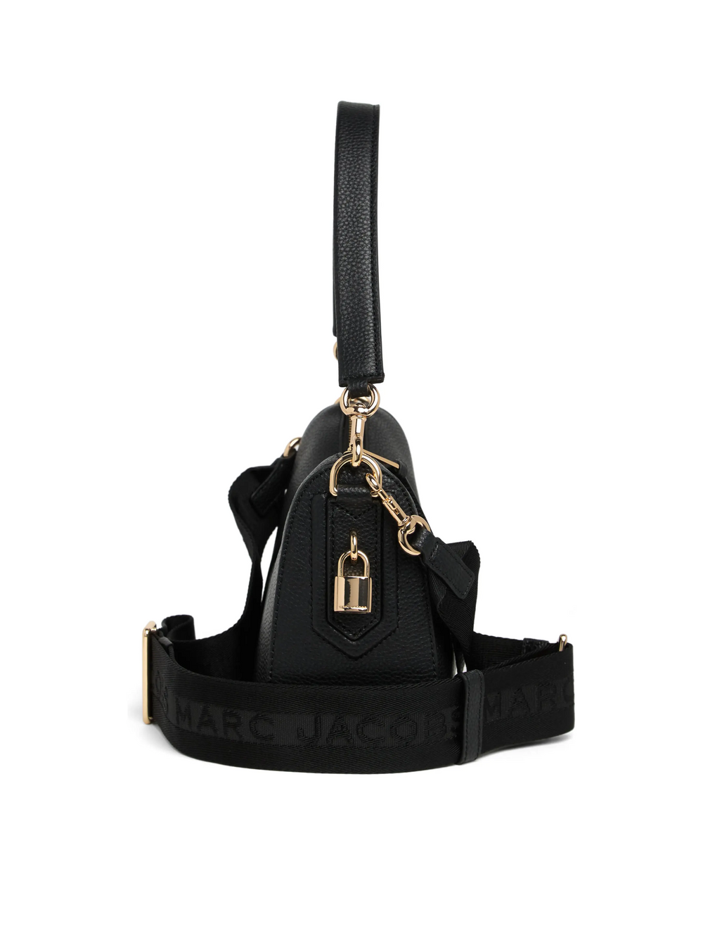 The detachable and adjustable webbing strap with logo pattern adds versatility to this sleek and sophisticated bag.