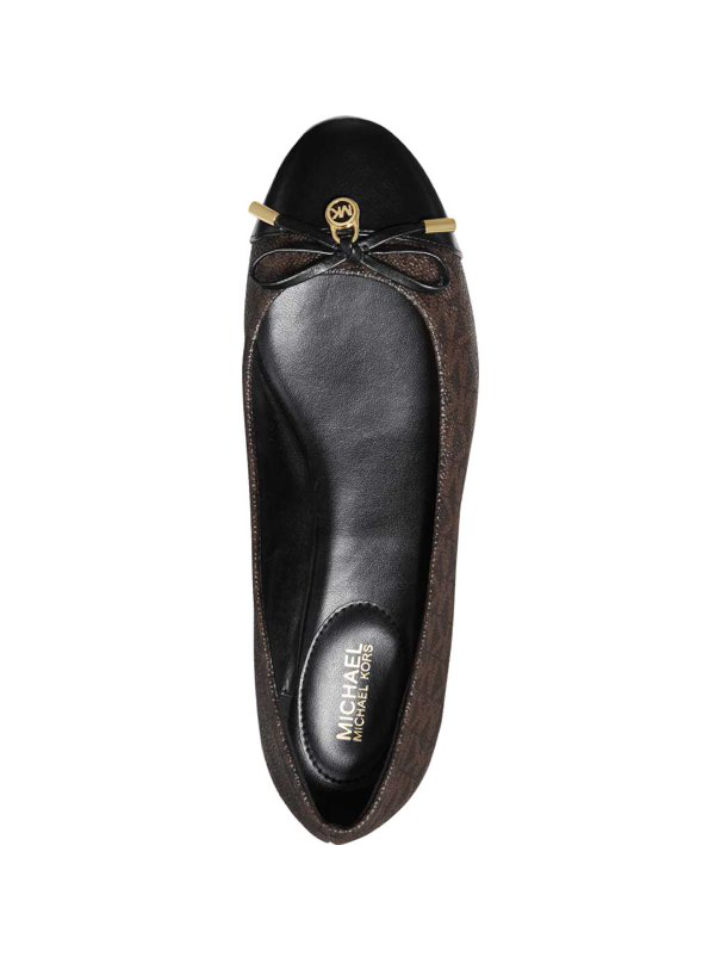 The Michael Kors 40F0MLFPAB Melody Ballet Flat in Black Multi combines elegant black leather with signature logo accents for a polished, versatile look.