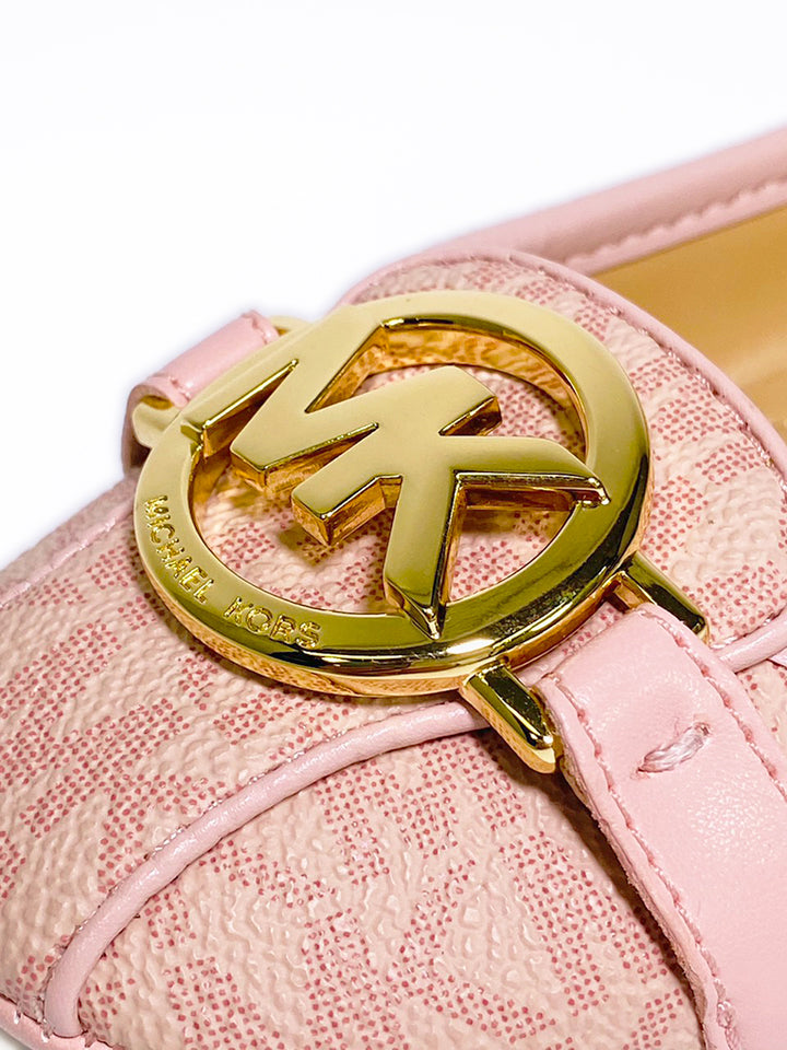 Step into comfort and style with Michael Kors' chic Fulton Moc Mini Logo PVC Ballet. This classic round-toe design has a signature PVC leather that is soft to the touch and a quality outsole for added comfort. Finished in a stylish Ballet/Pink colorway, it's perfect for everyday wear.