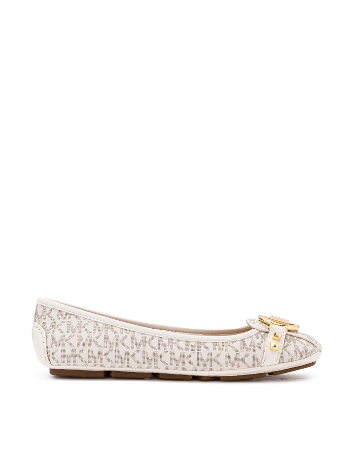 Look perfect with the chic vanilla Michael Kors Fulton Moc Mini Mk Logo Pyramid. Features include a round toe, comfortable high-quality outsole and signature PVC leather for added luxury. Look and feel your best in this gorgeous pair.