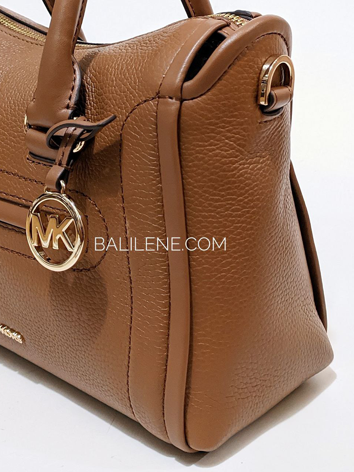 This classic Michael Kors Carine Medium Satchel is crafted from pebbled leather and features a detachable crossbody strap and adjustable shoulder strap for versatile styling. Gold-tone hardware and multiple interior and exterior pockets provide extra storage and an effortless look. Perfect for any occasion.