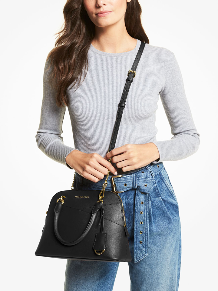 Michael Kors Jet Set Travel Medium Saffiano Leather Dome Satchel Black