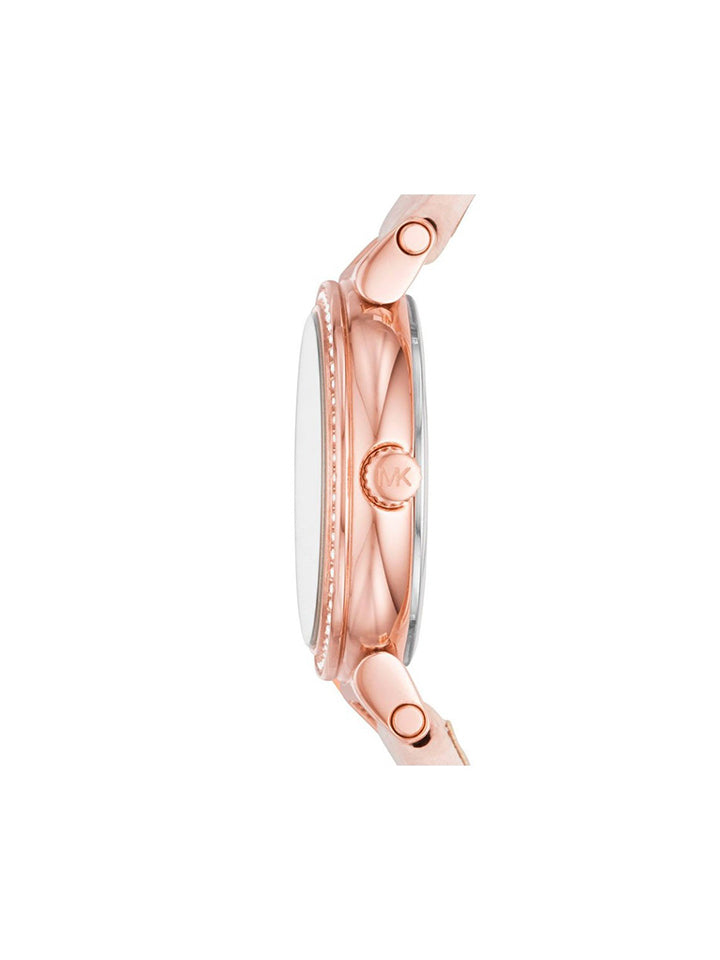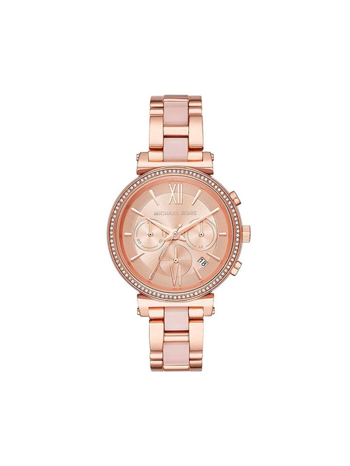 This Michael Kors Sofie Chronograph watch features a chic Rose Gold Dial with dual-tone Stainless Steel case and strap for a timeless, classic look. The Mineral crystal and Chronograph movement make it perfect for sophisticated daytime or evening wear.