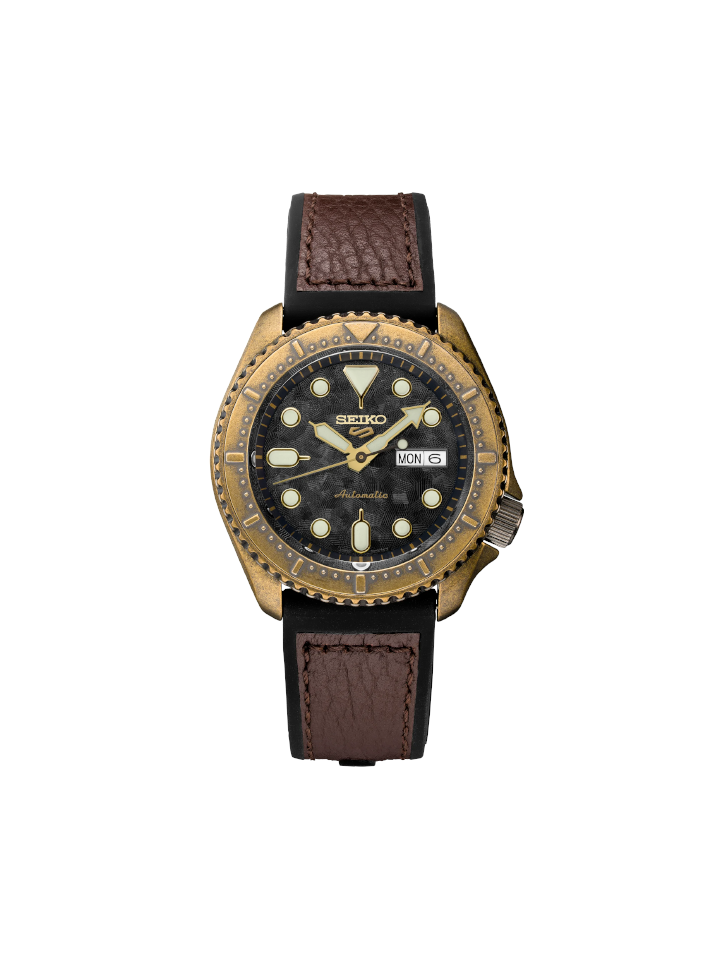 Seiko 5 Sports SRPE80K1 Automatic Brown Dial Calfskin Silicone Strap