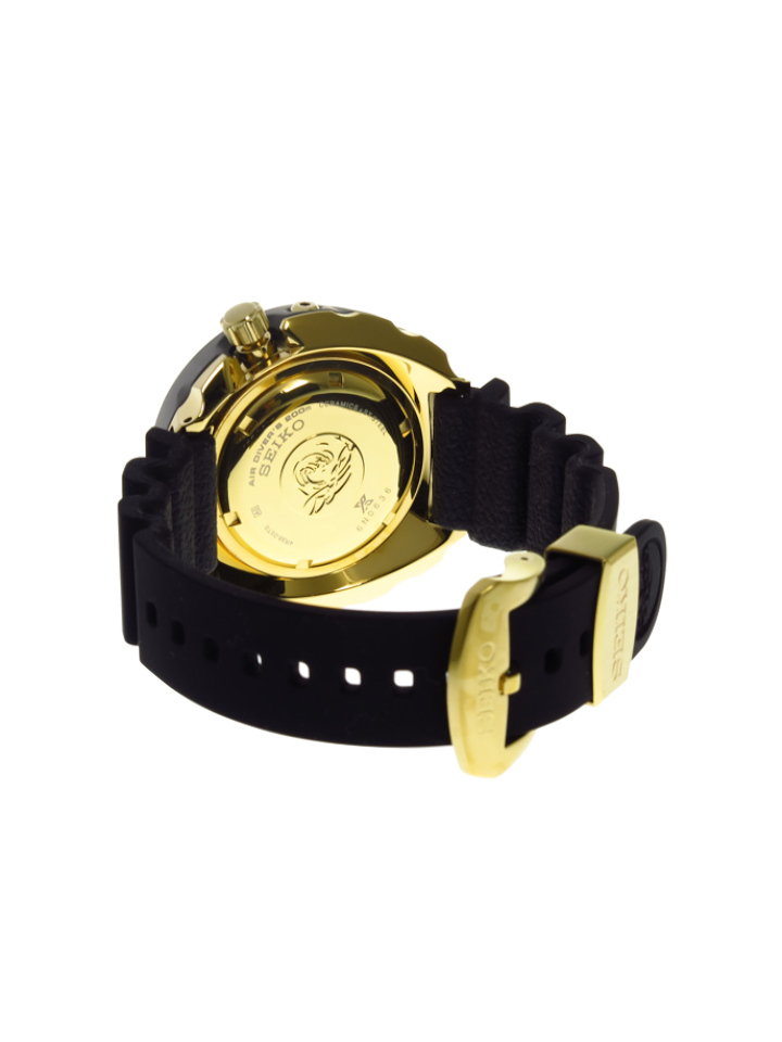 This Seiko Prospex SRPA82K1 Automatic Sea Baby Tuna watch is designed to impress, with a black rubber strap, black and gold stainless steel case, and black dial. An automatic movement and Hardlex Crystal complete the luxurious details, making this watch the perfect accessory for making a statement.
