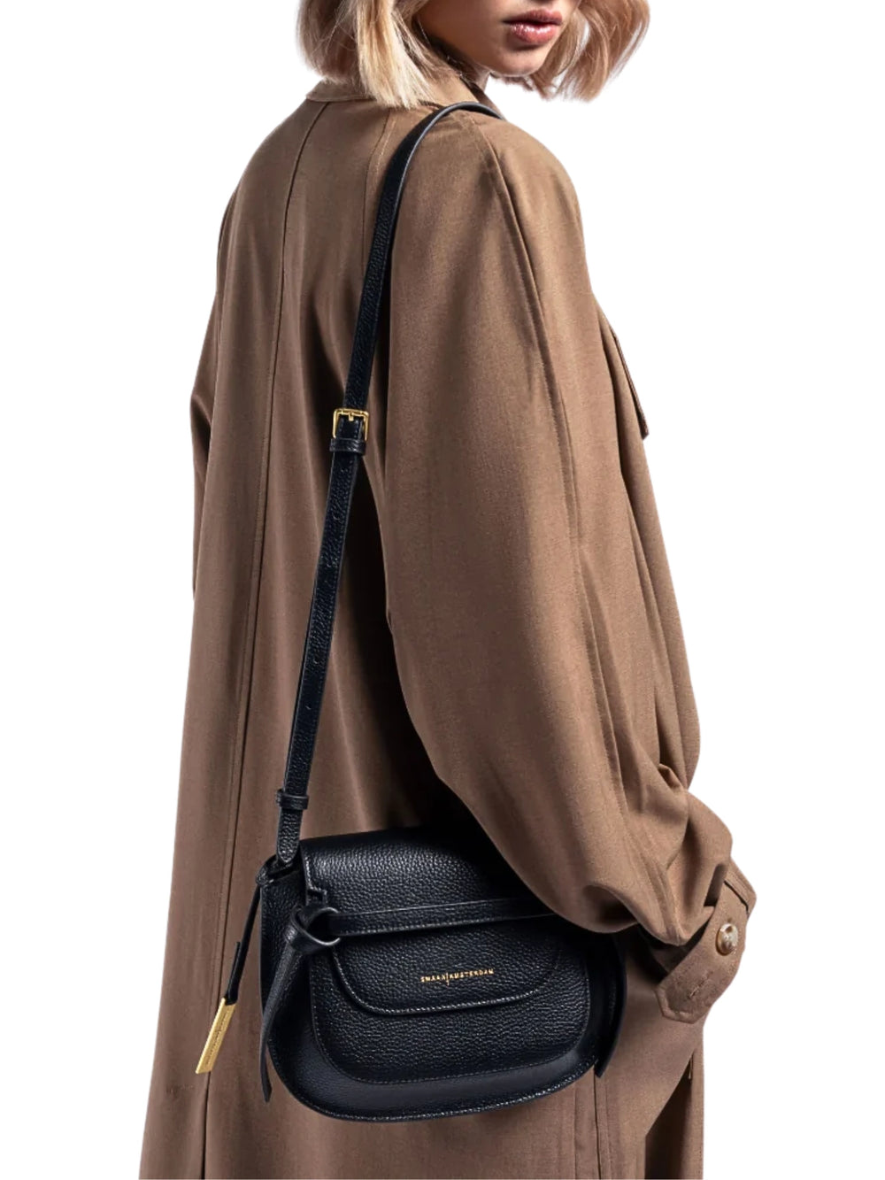 The CLINT crossbody bag is petite and elegant with a smooth suitable for any occasion. The CLINT fits all your essentials and opens with a front flap closed with magnetic closure. The bag has beautiful lines in the design with two loops on the sides.