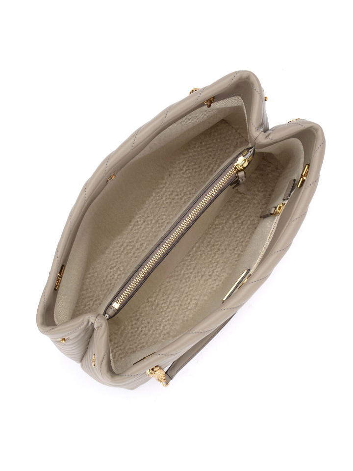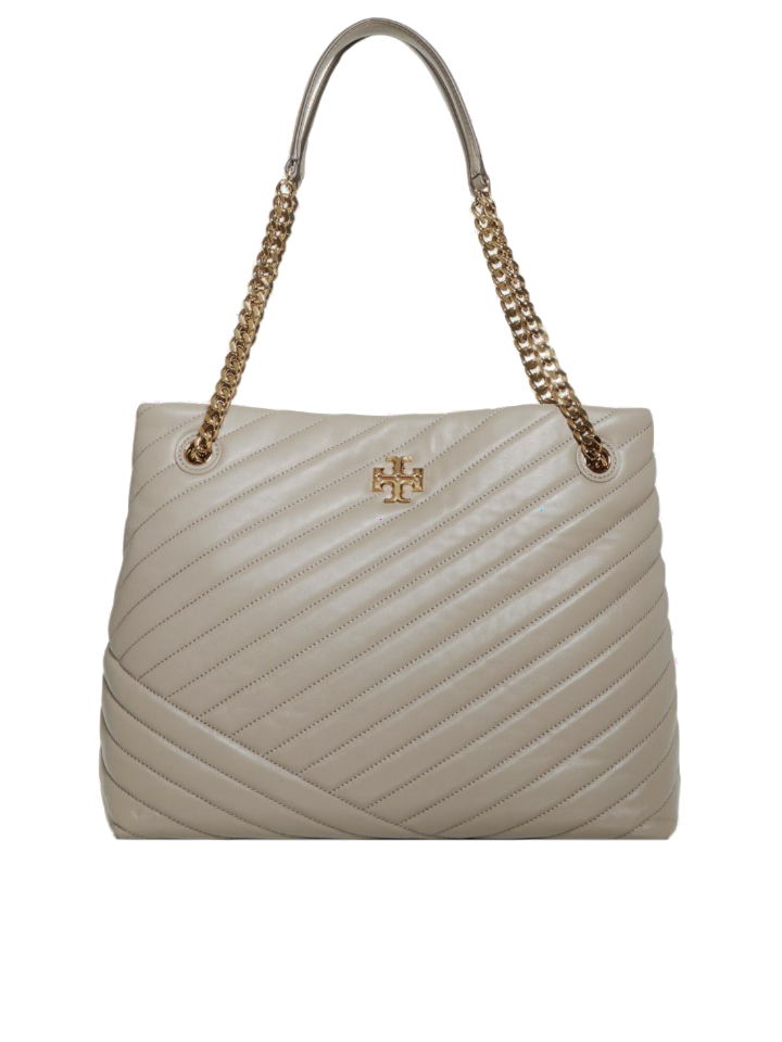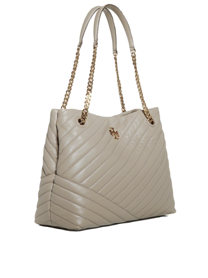 The Tory Burch 56757 Kira Chevron Tote Bag in Gray Heron offers a refined blend of classic design and modern functionality. Crafted with signature chevron quilting, this tote provides durability and timeless elegance.