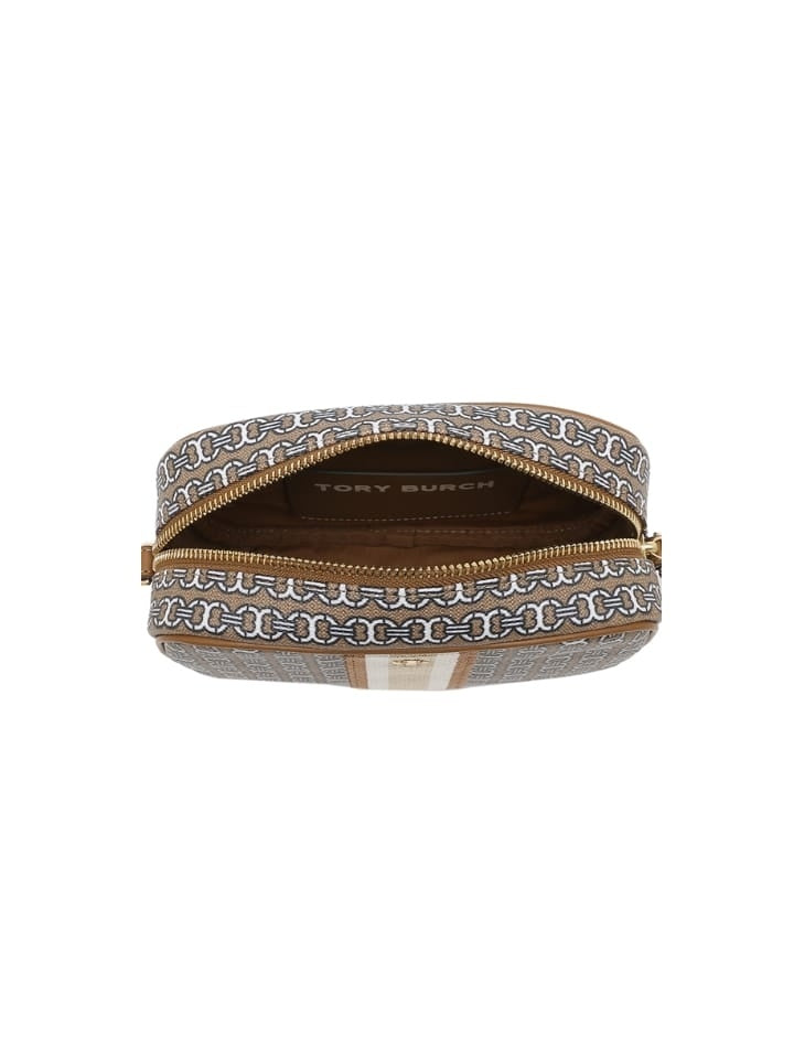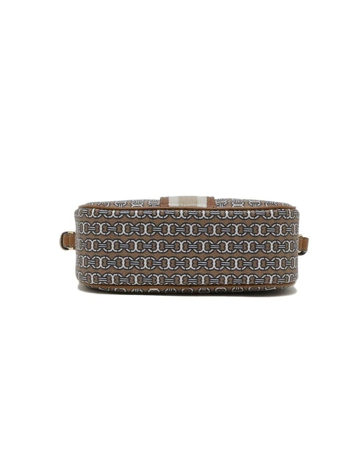 - Crossbody bag realized in coated canvas enriched fabric insert and metal logo at the front.